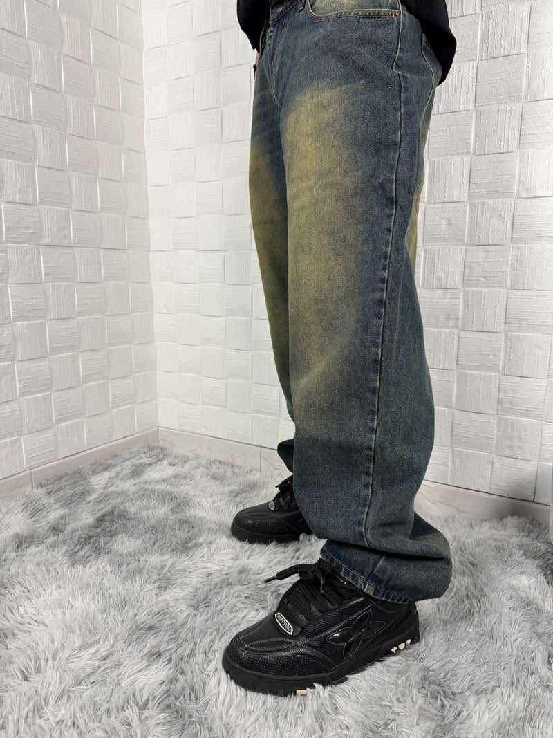 Scopri il massimo dello stile con questi jeans dal taglio ampio e dal design unico! Caratterizzati da un lavaggio sfumato che unisce tonalità blu e beige, offrono un look moderno perfetto per ogni occasione. Comodi, resistenti e trendy, sono l’aggiunta ideale al tuo guardaroba. Affrettati, scorte limitate!